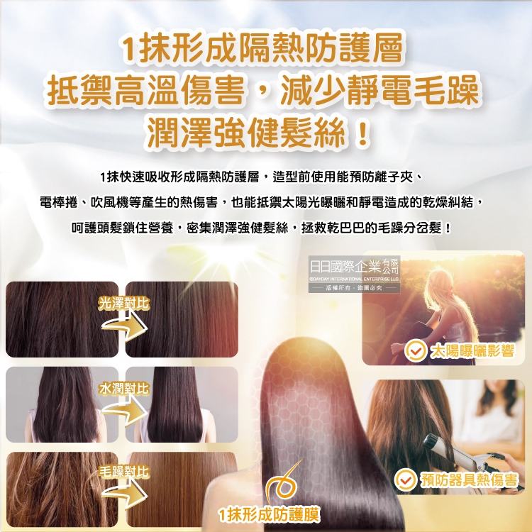 (2)乾髮:取適量直接塗抹於乾髮的中後段髮尾即可。