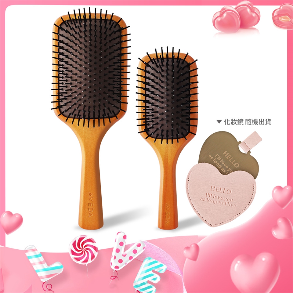 中文品名:AVEDA情人節限定組-木質髮梳+隨行按摩梳(大+小) -國際航空版 附歐沛媞愛心隨身化妝鏡