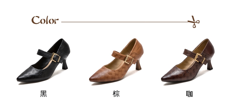 【VECCHIO】羊皮尖頭壓花一字釦帶高跟鞋/真皮羊皮尖頭壓花一字釦帶高跟鞋 女鞋 黑