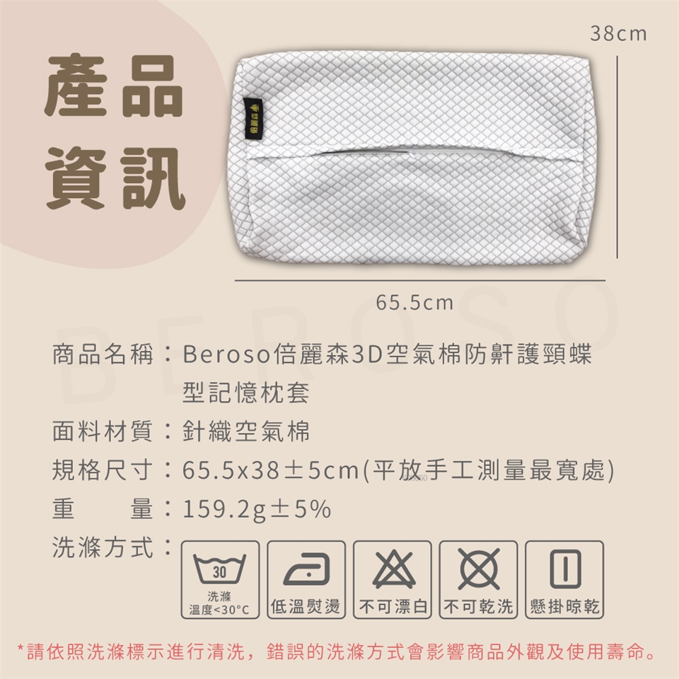 商品名稱:Beroso 倍麗森買二送二3D空氣棉防鼾護頸紓壓蝶型記憶枕頭-超值兩入組+枕套-超值兩入組
