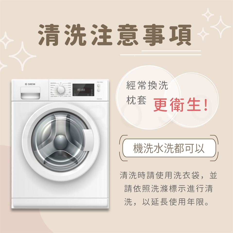 5.洗滌僅限防塵枕套,錯誤的洗滌方式會影響外觀及壽命