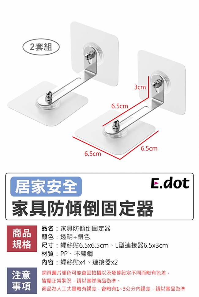 ◆ 尺寸:螺絲貼6.5x6.5cm、L型連接器6.5x3cm