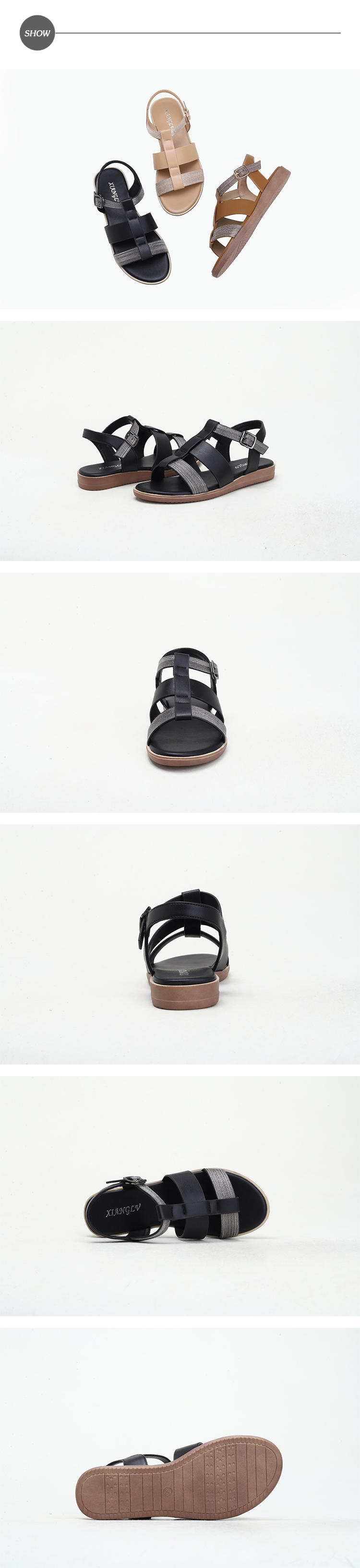 【DROM】織帶拼接平底羅馬涼鞋/典雅織帶拼接復古時尚平底羅馬涼鞋 女鞋 黑