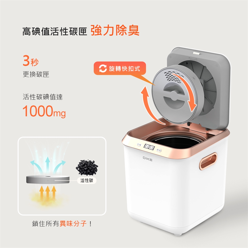 配件:主機、鑄鋁乾燥桶、活性碳濾芯、說明書