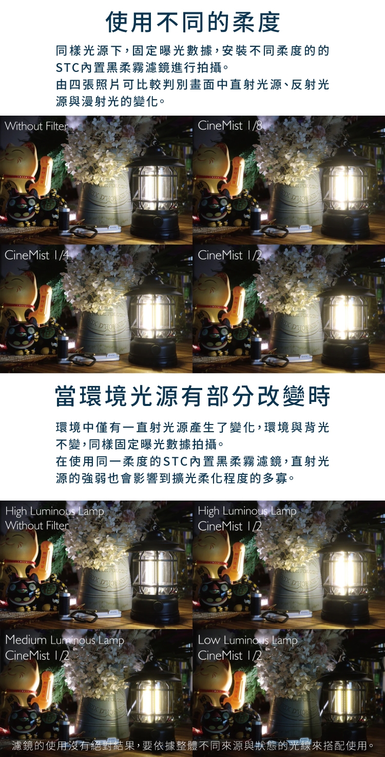 ●濾鏡的使用沒有絕對結果,要依據整體不同來源與狀態的光線來搭配使用。