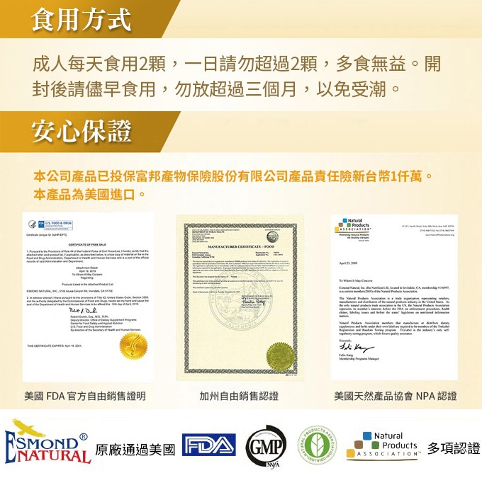 ◆製造廠:ESMOND NATURAL INC. IRWINDALE, CA 91706 U.S.A 製造廠