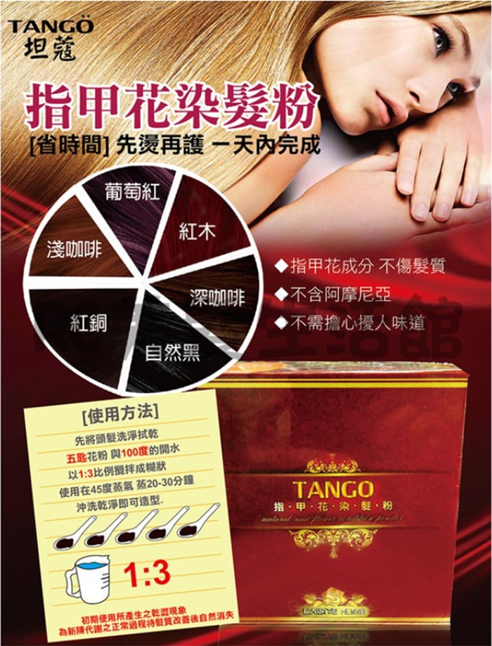 ◆ 指甲花染髮粉 先燙在護 一天內完成