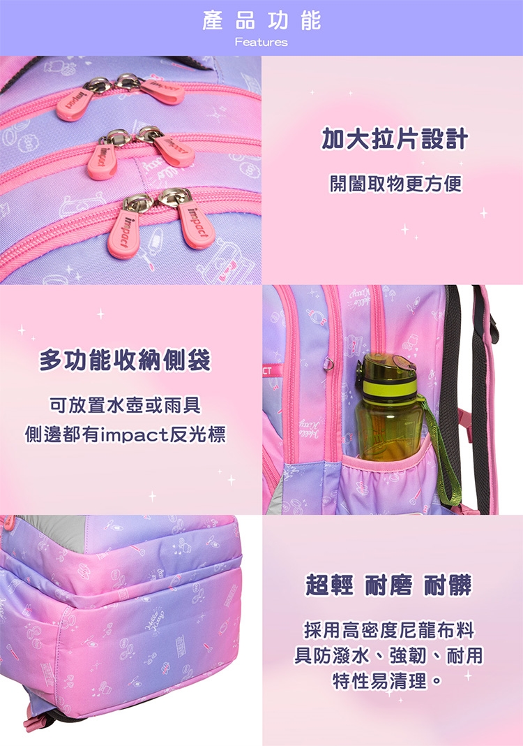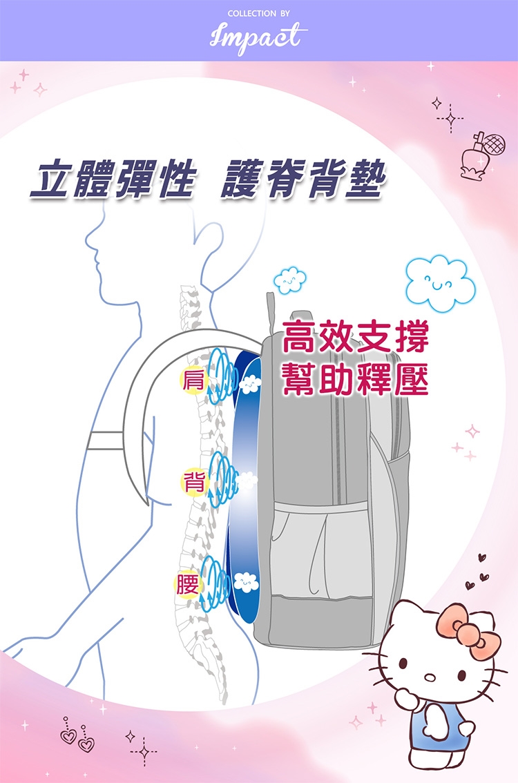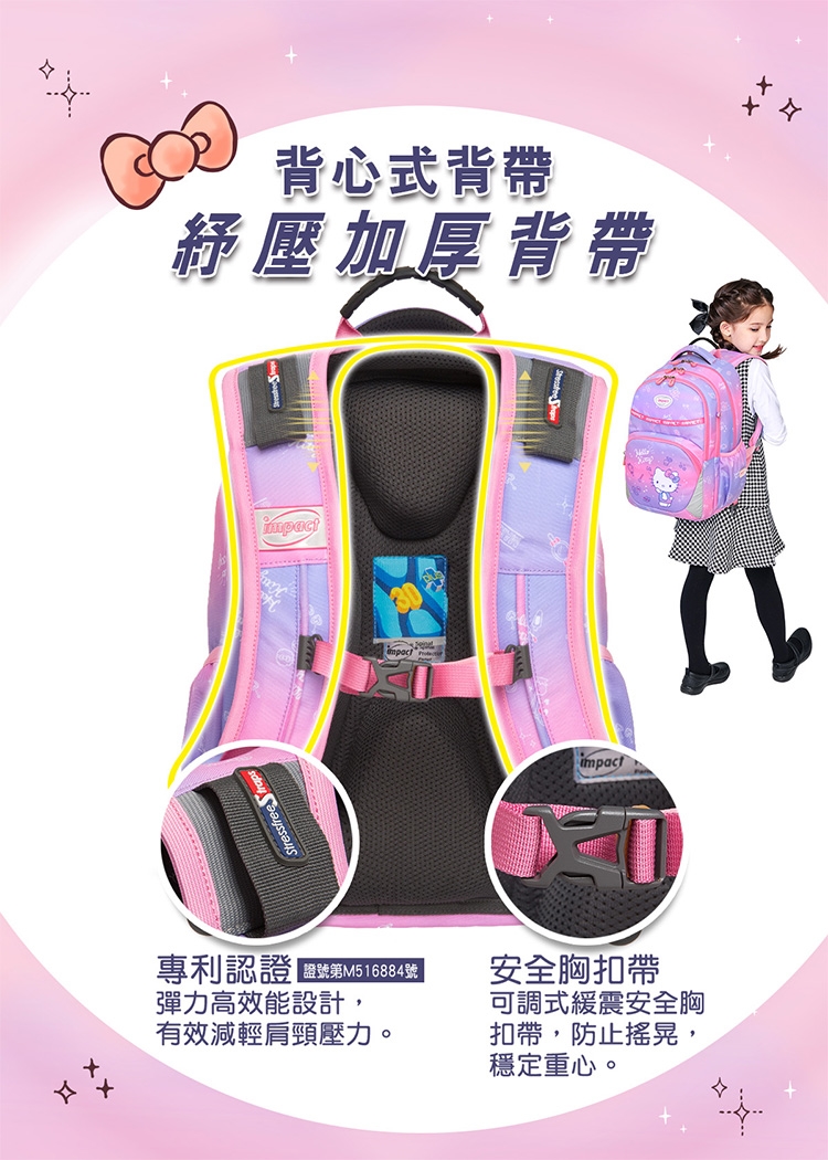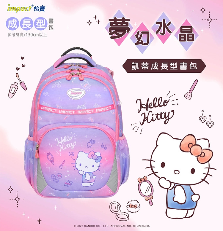 品名: 【IMPACT】怡寶 夢幻水晶凱蒂成長型護脊書包-粉色 /個 IMKT602PK