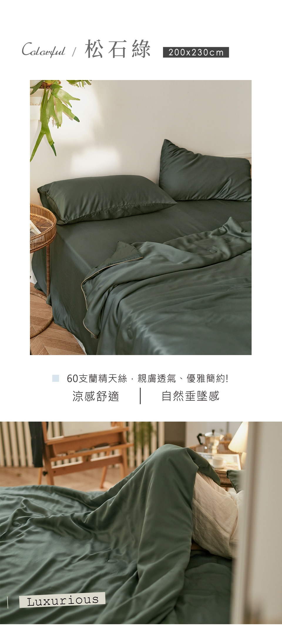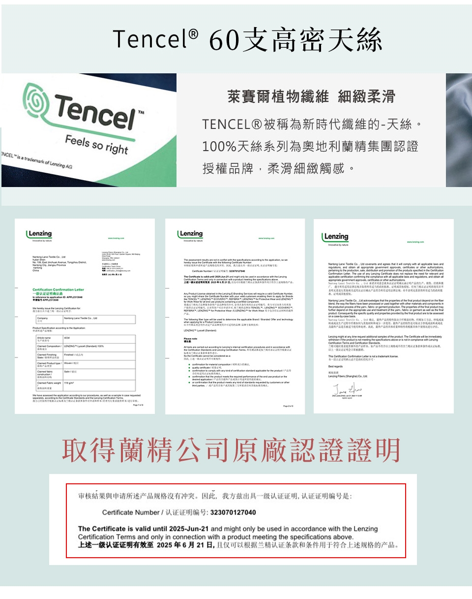 採用60支紗線編織,擁有媲美真絲的光澤感,手感細膩爽滑且富有垂墜感,讓肌膚時刻縱享裸睡般的絲滑寵愛。