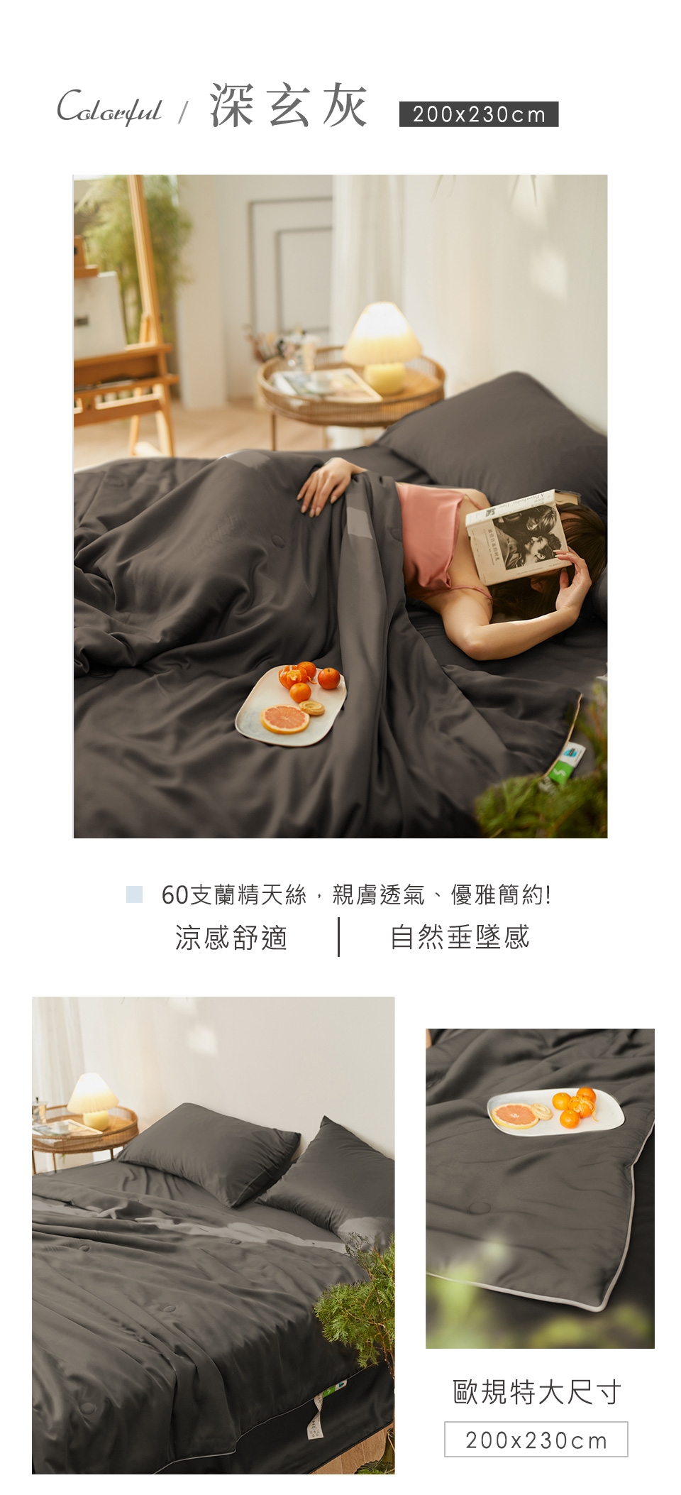 60支奧地利蘭精正天絲 法式質感素色涼被【200X230cm】四季被 舒柔被 夏被