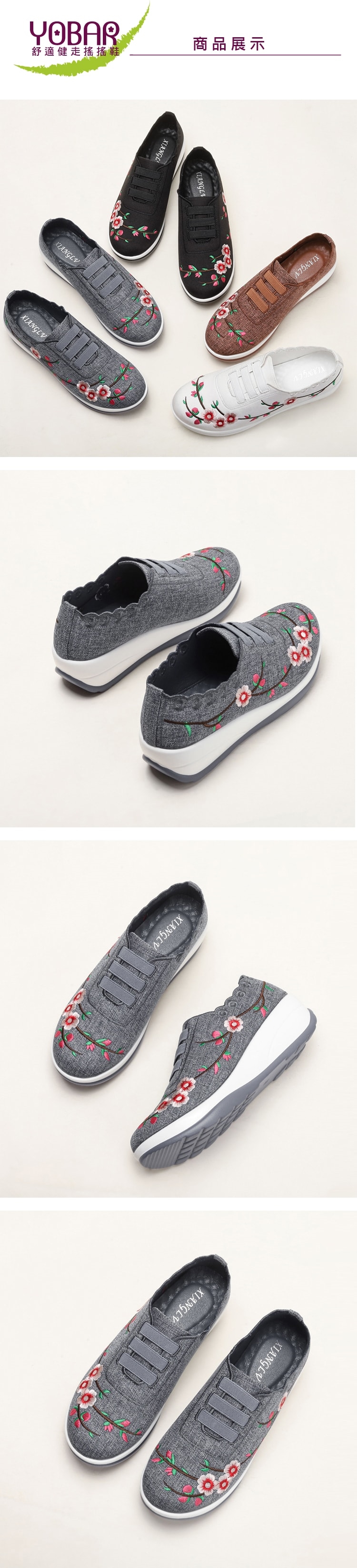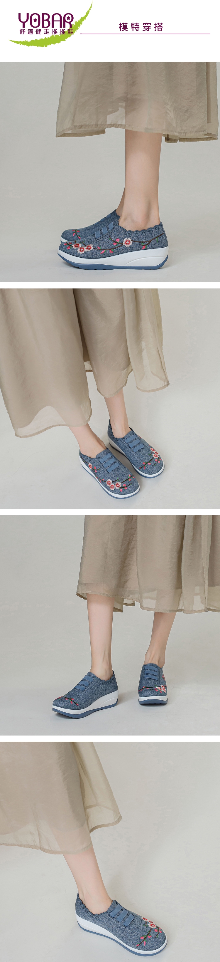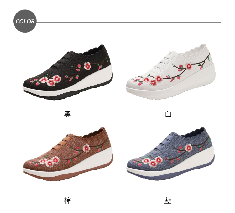 【YOBAR】刺繡波浪厚底搖搖鞋/中國風花朵刺繡波浪鞋口厚底美腿搖搖鞋 女鞋 藍