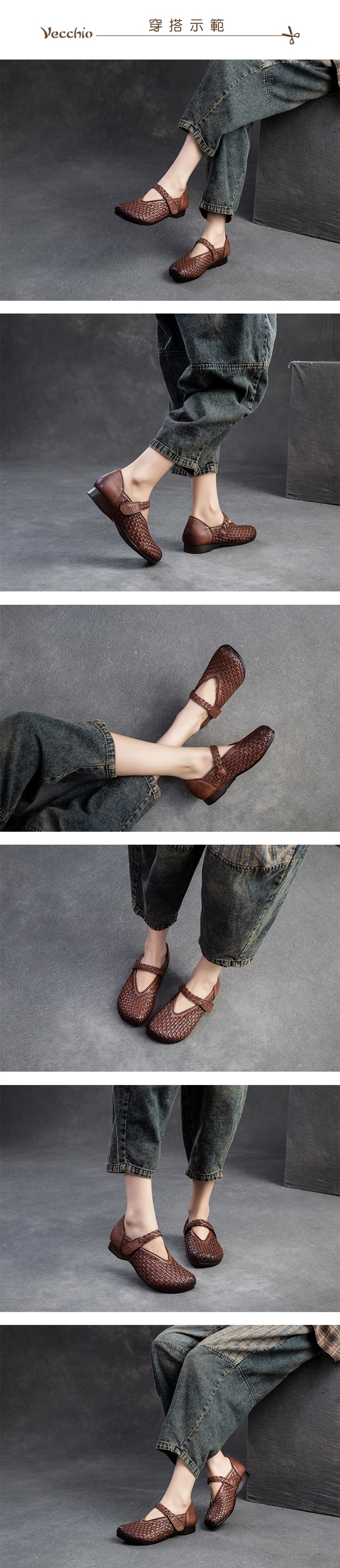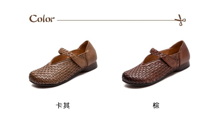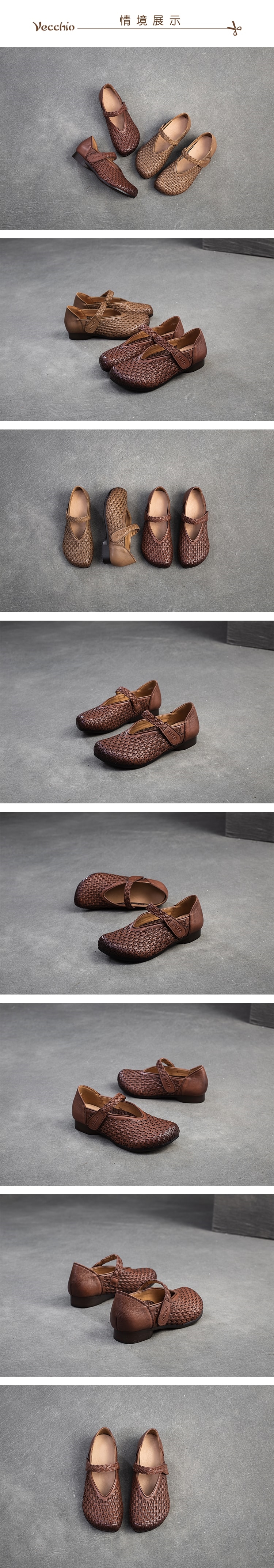 【VECCHIO】真皮編織娃娃鞋/真皮頭層牛皮手工編織寬楦V口一字帶舒適娃娃鞋 女鞋 棕