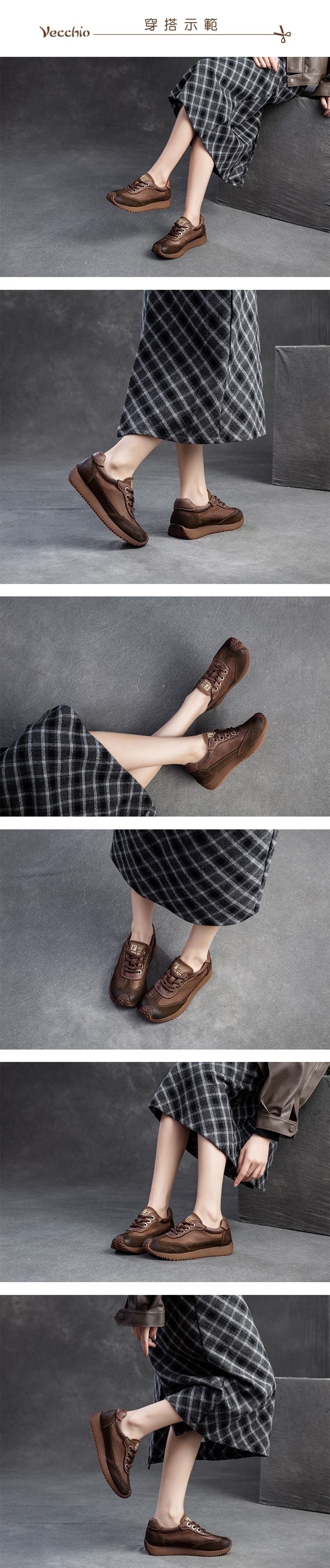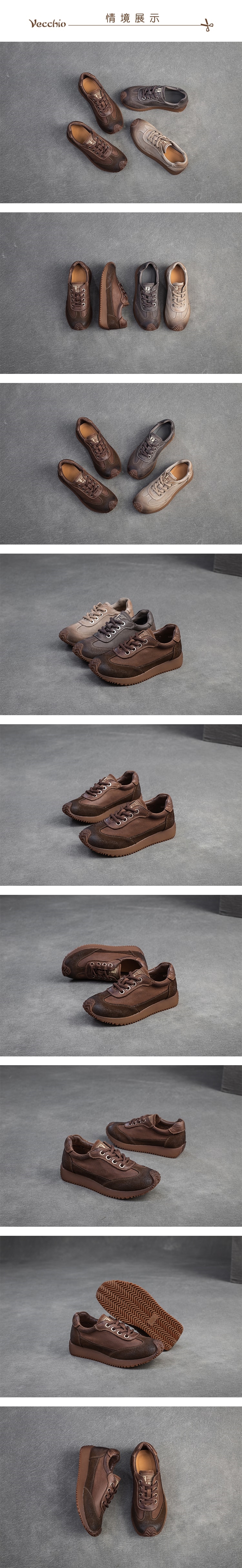 【VECCHIO】全真皮純色厚底休閒鞋/全真皮頭層牛皮純色復古厚底休閒鞋 女鞋 棕