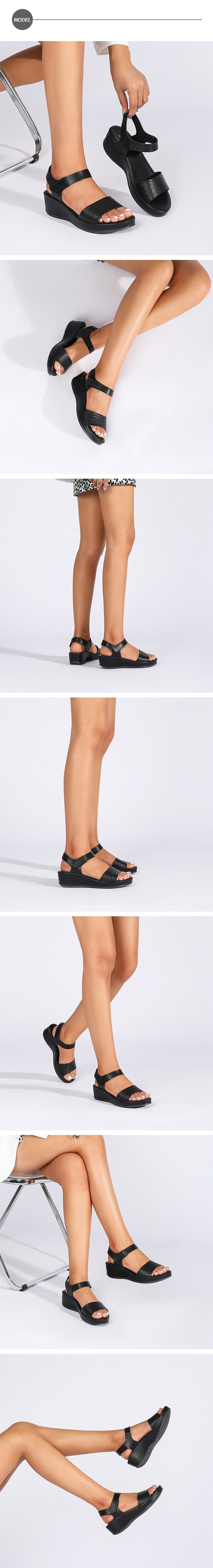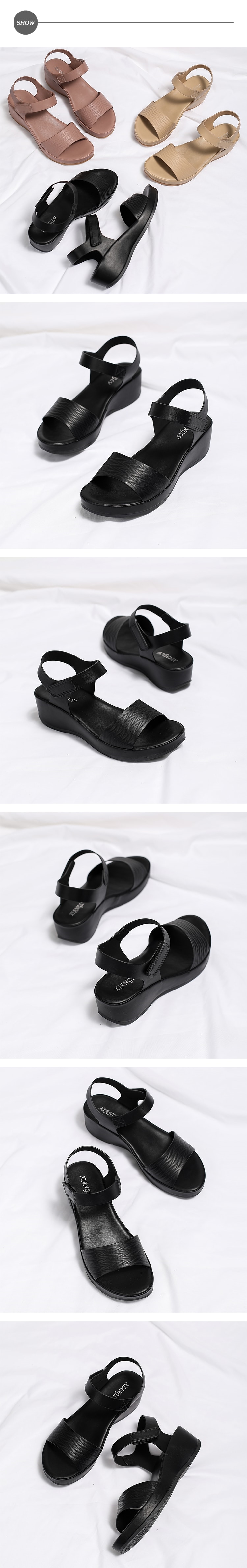 【DROM】波浪壓紋魚口坡跟厚底涼鞋/波浪壓紋魚口露趾坡跟厚底涼鞋 女鞋 黑