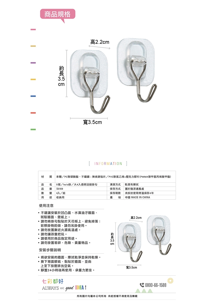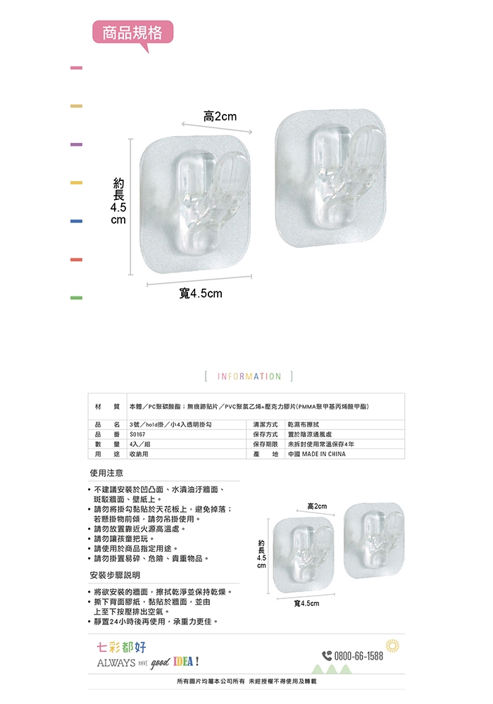 ◎ 注意事項:請勿掛置易碎、危險、貴重物品