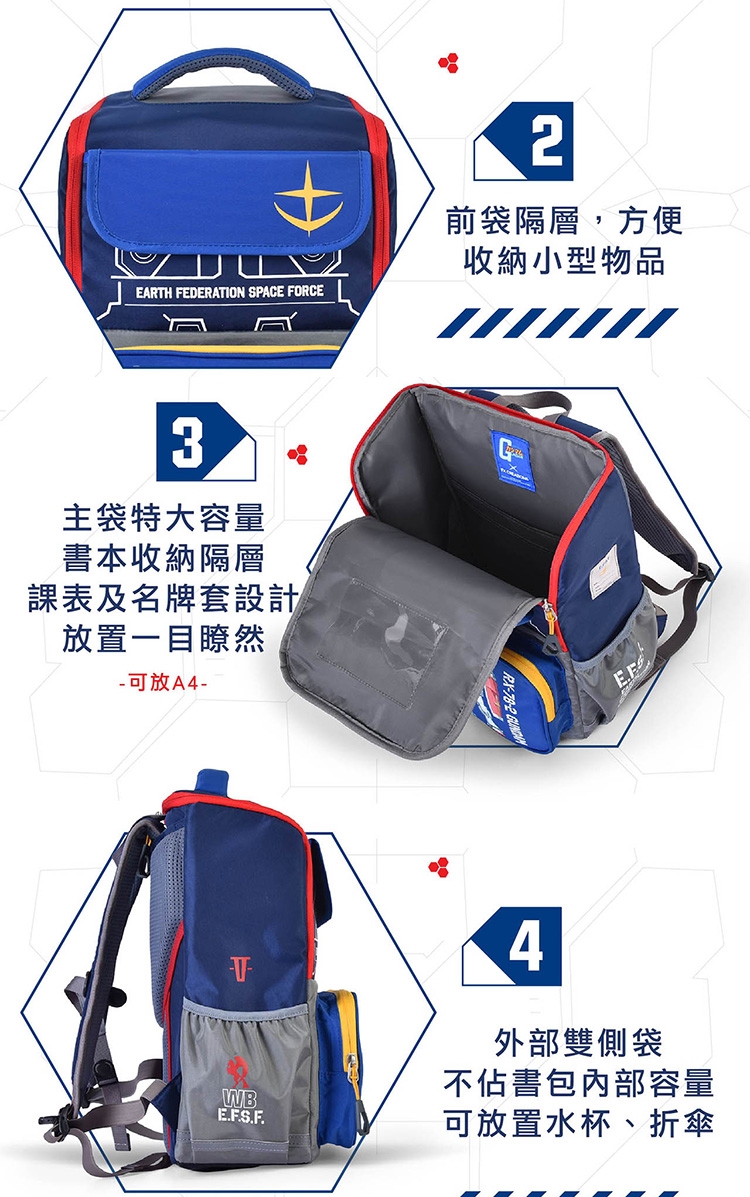 品名: 【IMPACT】怡寶 機動戰士鋼彈-AGS回彈減壓護脊書包-小-深藍 /個 IMSNA242015A98