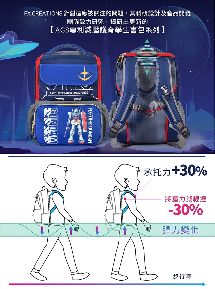 動漫史上的不朽經典!由台灣總代理BAG TO YOU百達遊引進,impact怡寶X機動戰士鋼彈-AGS回彈減壓護脊書包,鮮明獨特的機動戰士角色設計圖樣,視覺上令人驚豔!背著它,上學也能變得超有趣!