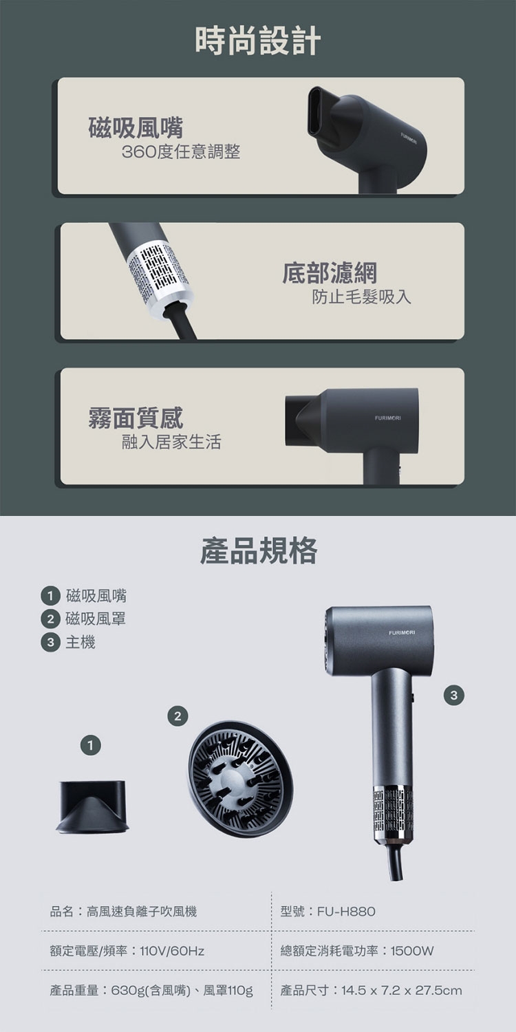 ★ 磁吸式風罩+風嘴,可輕鬆更換或轉動吹頭