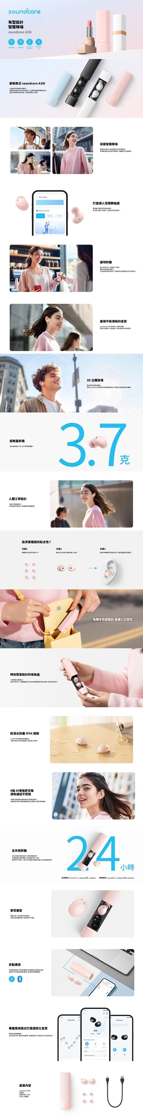 •內容物:a30i、使用說明書、C to A充電線、矽膠耳塞x2