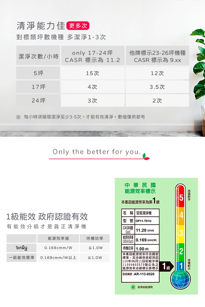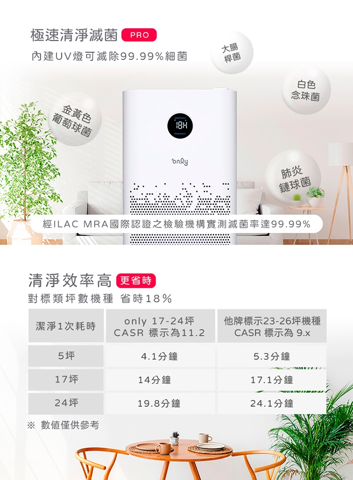 潔凈空氣提供率(CASR):11.20cmm (台灣標準)