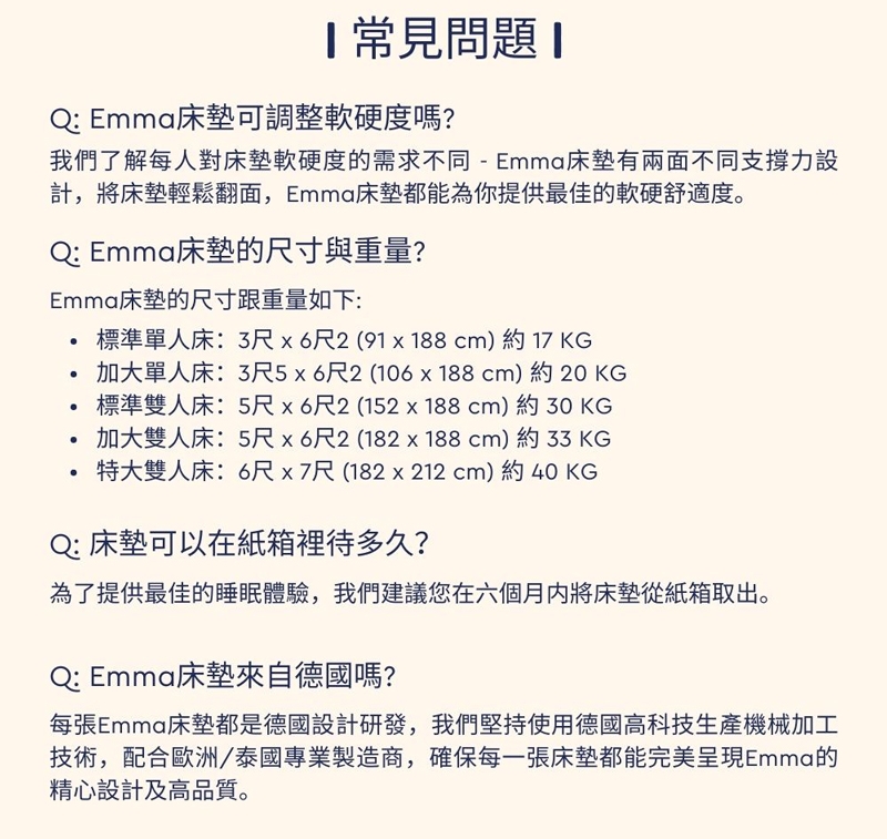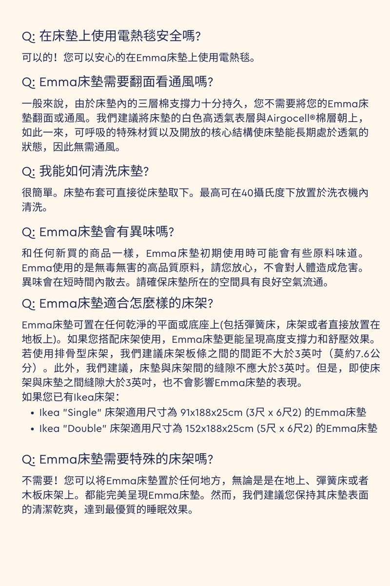 - 標準雙人床:5尺 x 6尺2 (152 x 188 cm) 約 30 KG