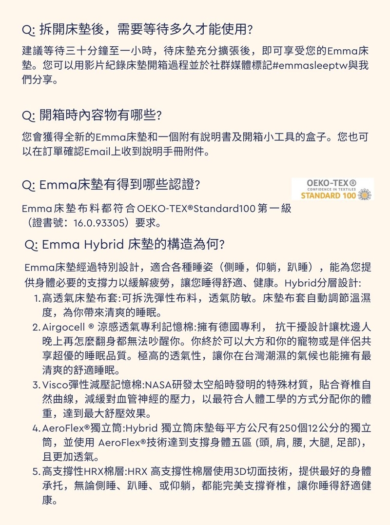 建議等待三十分鐘至一小時,待床墊充分擴張後使用