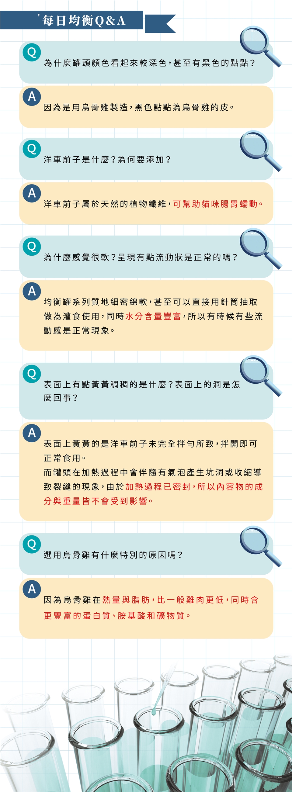 台灣鮮雞肉、台灣烏骨雞、雞肝、雞心、雞胗、鮭魚油、蛋黃粉、綜合胺基酸、水解蛋白、膠原蛋白、酵母粉、洋車前子、綜合維生素(B群、A、C、D、E)、礦物質、牛磺酸、半乳寡糖