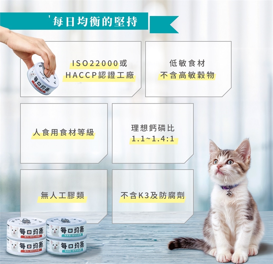 台灣鮮雞肉、鮪魚、雞蛋黃、雞肝、雞油、鮭魚油、牛磺酸、洋車前子、綠藻粉、雞冠、綜合維生素(B群、A、C、D、E)、礦物質