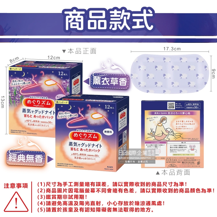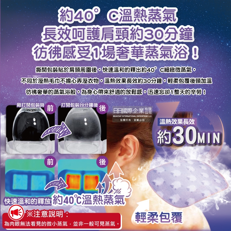 品名:40°C蒸氣睡前溫感肩頸熱敷貼片