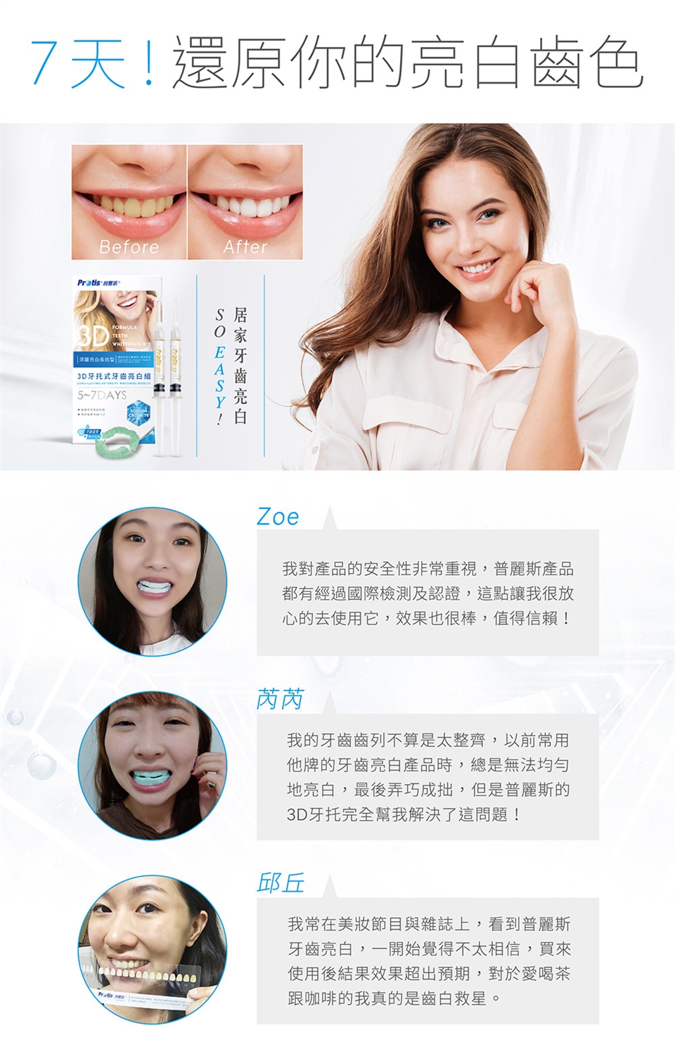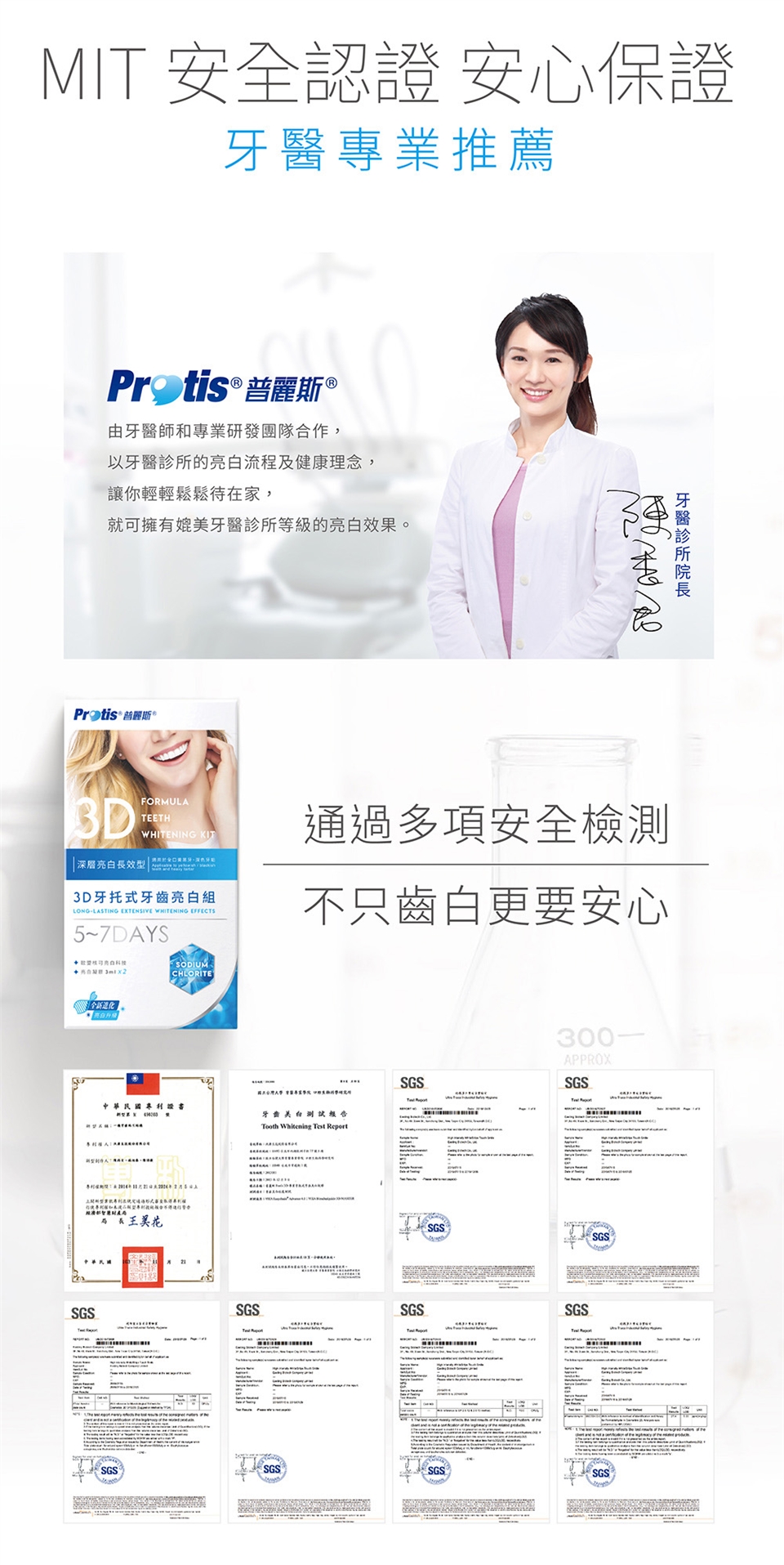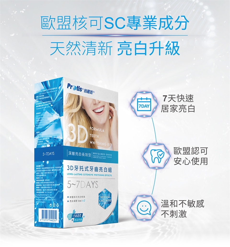 ※Protis普麗斯-3D藍鑽牙托式深層長效牙齒美白組-歐盟新配方(5-7天)1組內容: