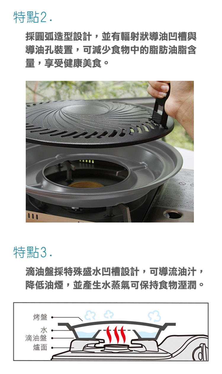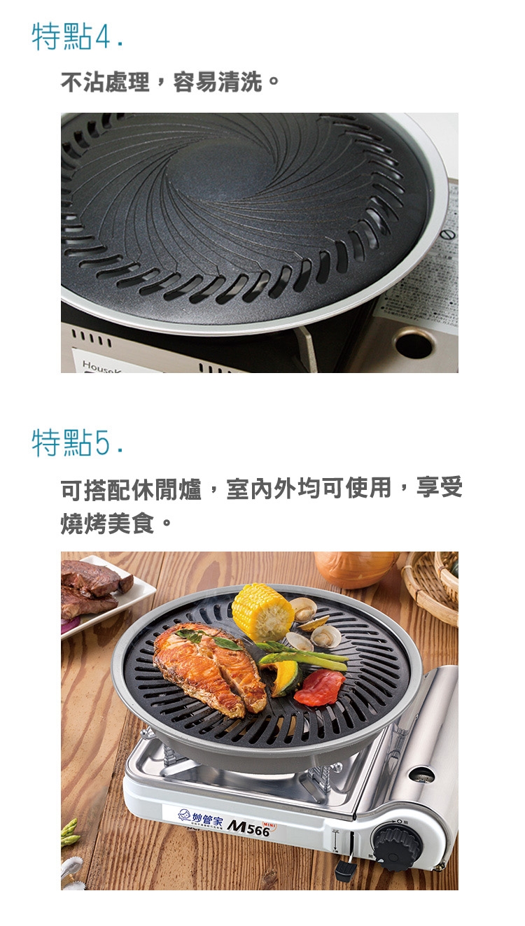 4.避免空燒與火力過強,以延長烤盤壽命。