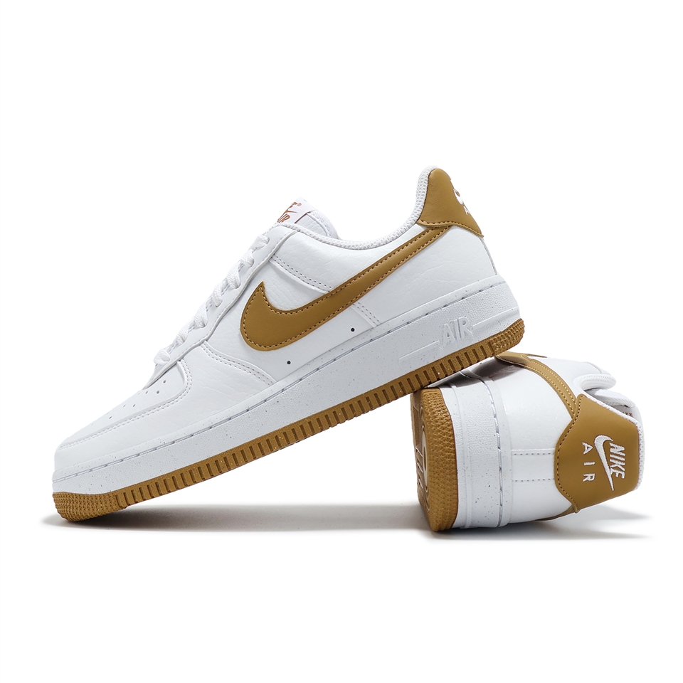 * 鞋面以柔軟的皮革材質設定,搭配經典白色鞋面與卡其色 Swoosh 設計,呈現清新風格。