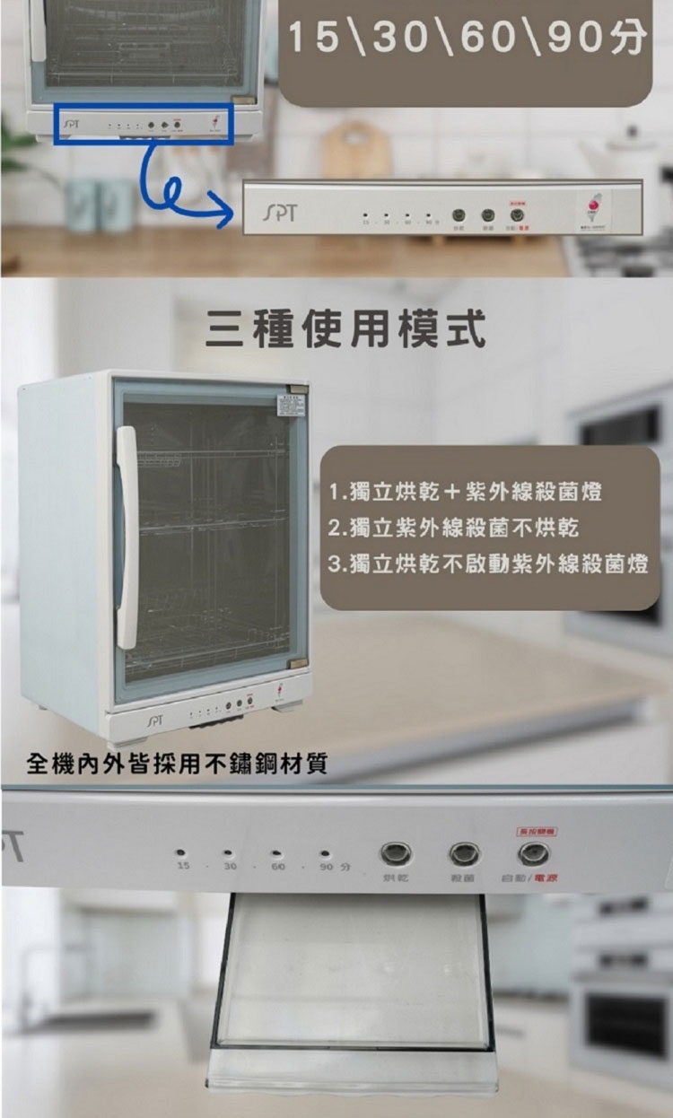 ◆ 三種使用模式(獨立紫外線殺菌 . 獨立烘乾 .紫外線+烘乾)