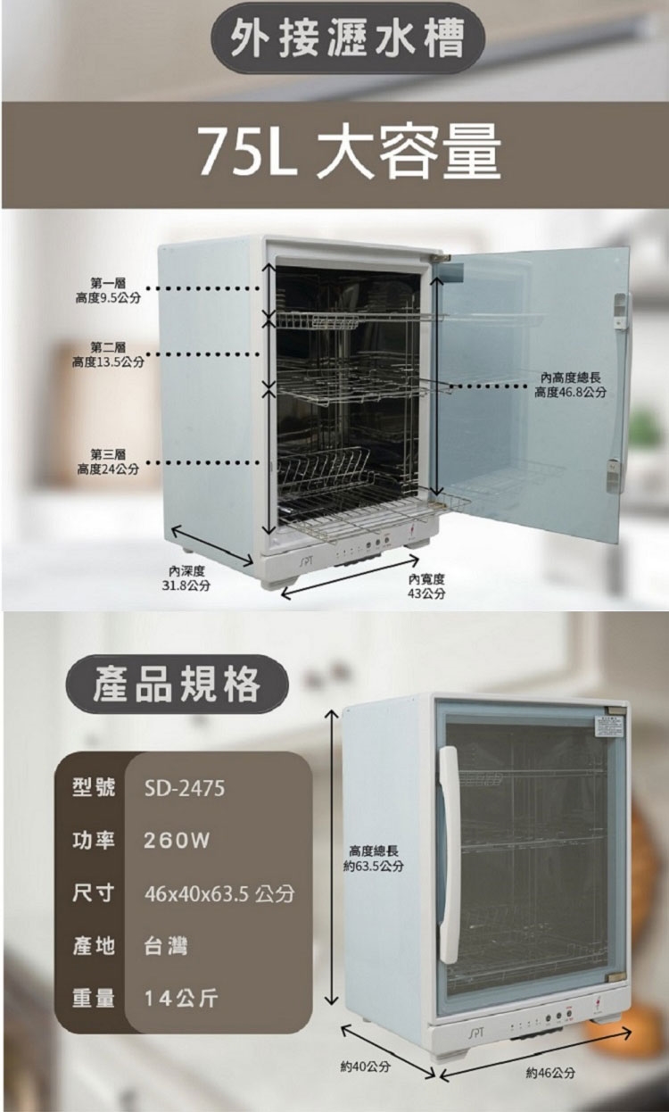 ★ 75公升大容量