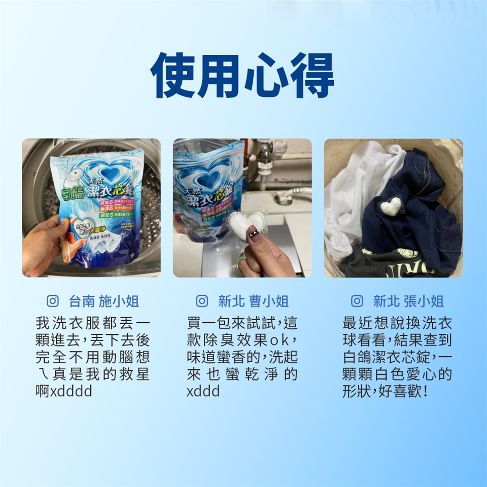 *使用後請密封好外袋,勿用潮濕雙手觸摸潔衣芯錠,以防外膜融化