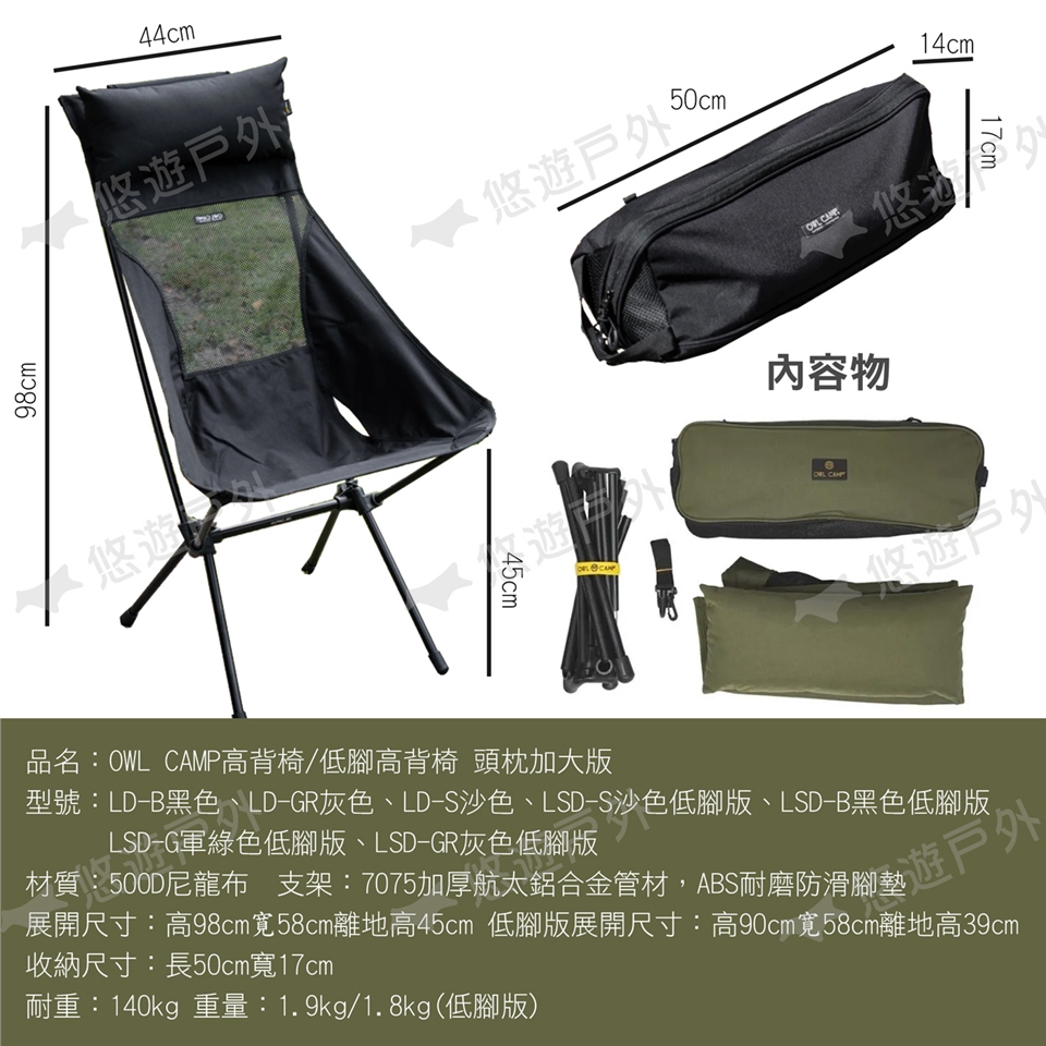 【悠遊戶外】OWL CAMP 高背椅/低腳高背椅 頭枕加大版