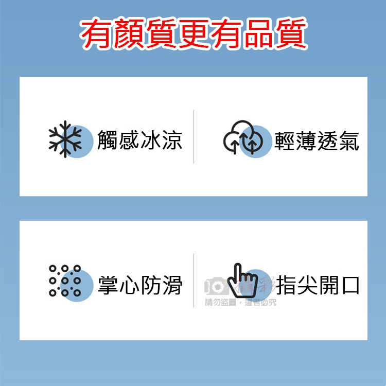 特色:輕薄透氣、冰涼防曬、掌心防滑