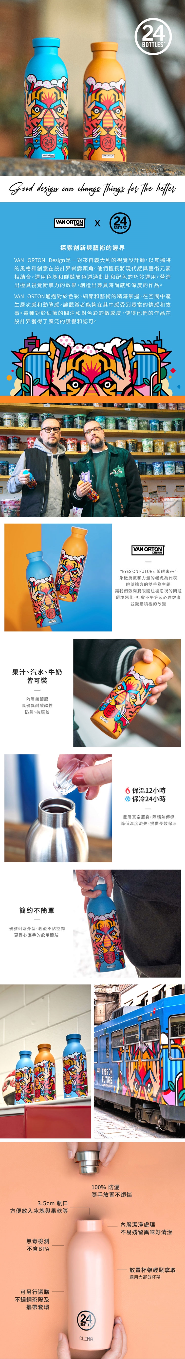24Bottles 保溫瓶擁有雙層真空斷熱層設計,有效降低熱傳導,可使飲料保溫12小時,保冷24小時,
