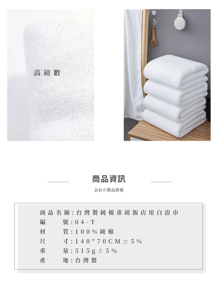 品名 : 台灣製純棉加厚重磅飯店大浴巾
