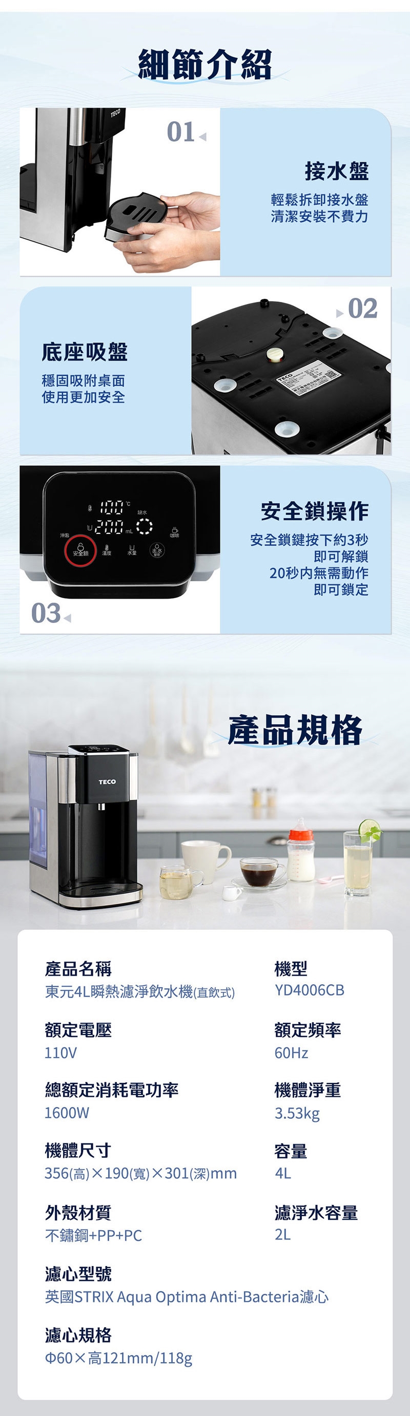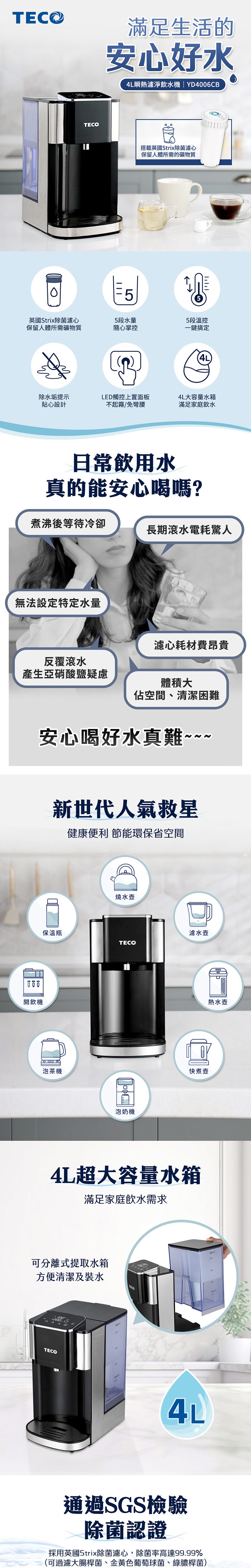 ◆4L超大容量水箱,滿足家庭飲水需求。