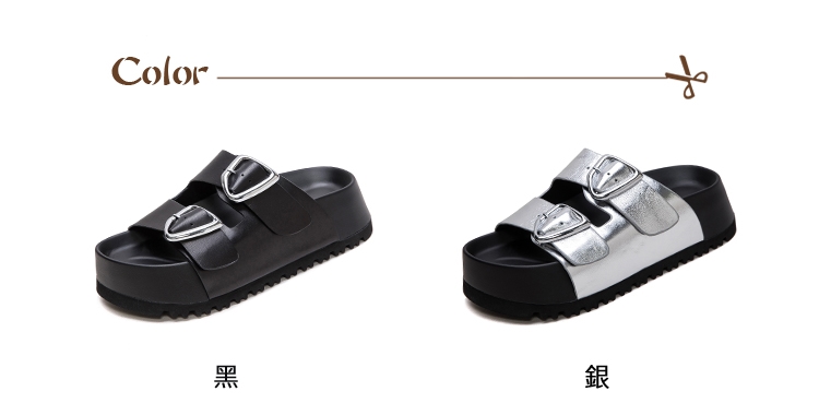 【VECCHIO】真皮幾何皮帶釦飾鬆糕厚底拖鞋/真皮頭層牛皮幾何皮帶釦飾鬆糕厚底拖鞋 女鞋 黑