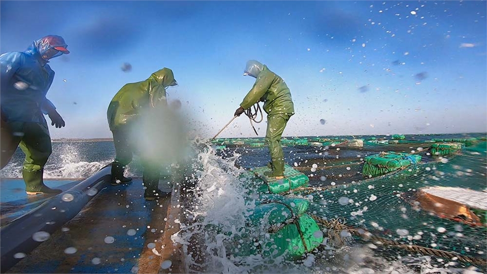 這裡夏天豔陽高照,我們在烈日下,需要在海上作業八小時以上,在平日就要做好防颱準備。冬天風超過12級,浪也非常大,人家都說冬天的澎湖如同颱風,每一次出海都必須費盡精力與海浪拚搏!