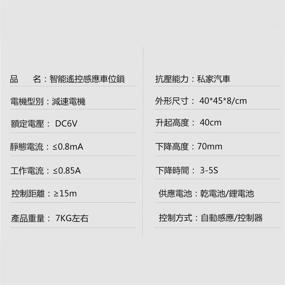 品名:智能遙控感應車位鎖