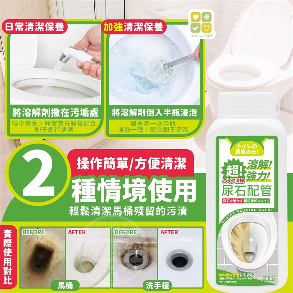 馬桶尿鹼溶解劑專為解決頑固尿鹼和水垢設計,讓清潔馬桶變得輕鬆高效。