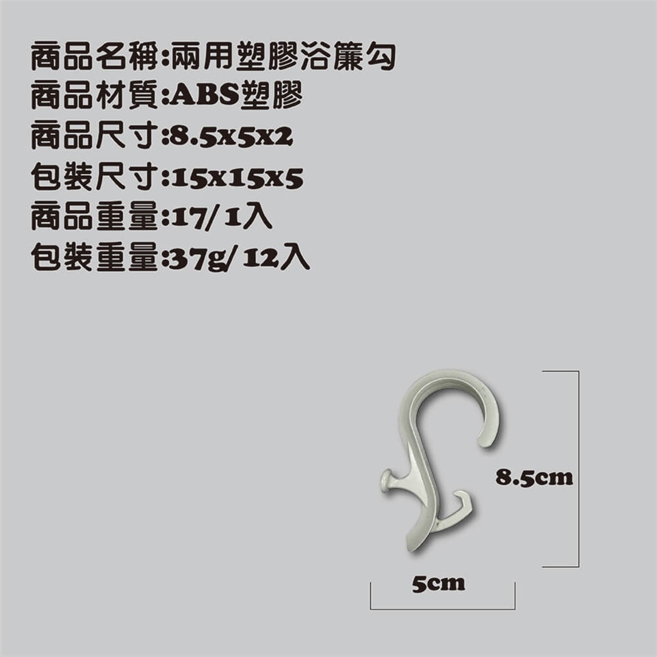 內 容 物:兩用塑膠浴簾勾x12