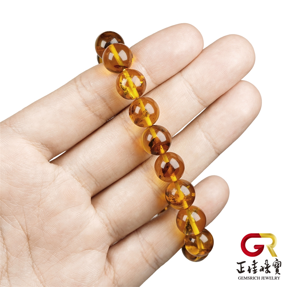 花珀 頂級金紅花珀 10.4-10.7mm 金紅花珀手珠|日本彈力繩