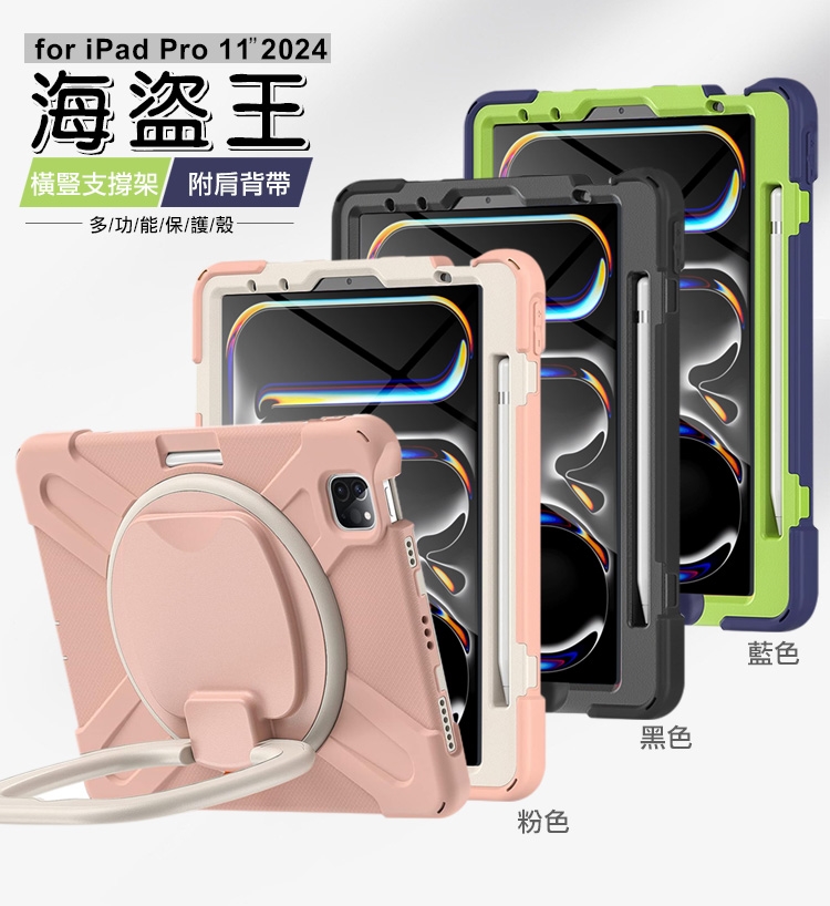 海盜王B款 iPad Pro 11吋 (2024)平板保護殼 附背帶 精裝版
