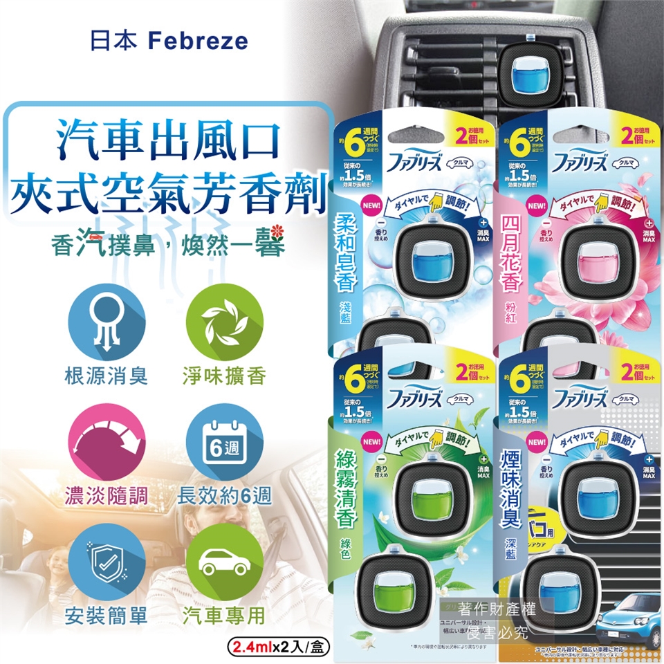 ●款式:柔和皂香(淺藍)、四月花香(粉紅)、綠霧清香(綠色)、煙味消臭(深藍)