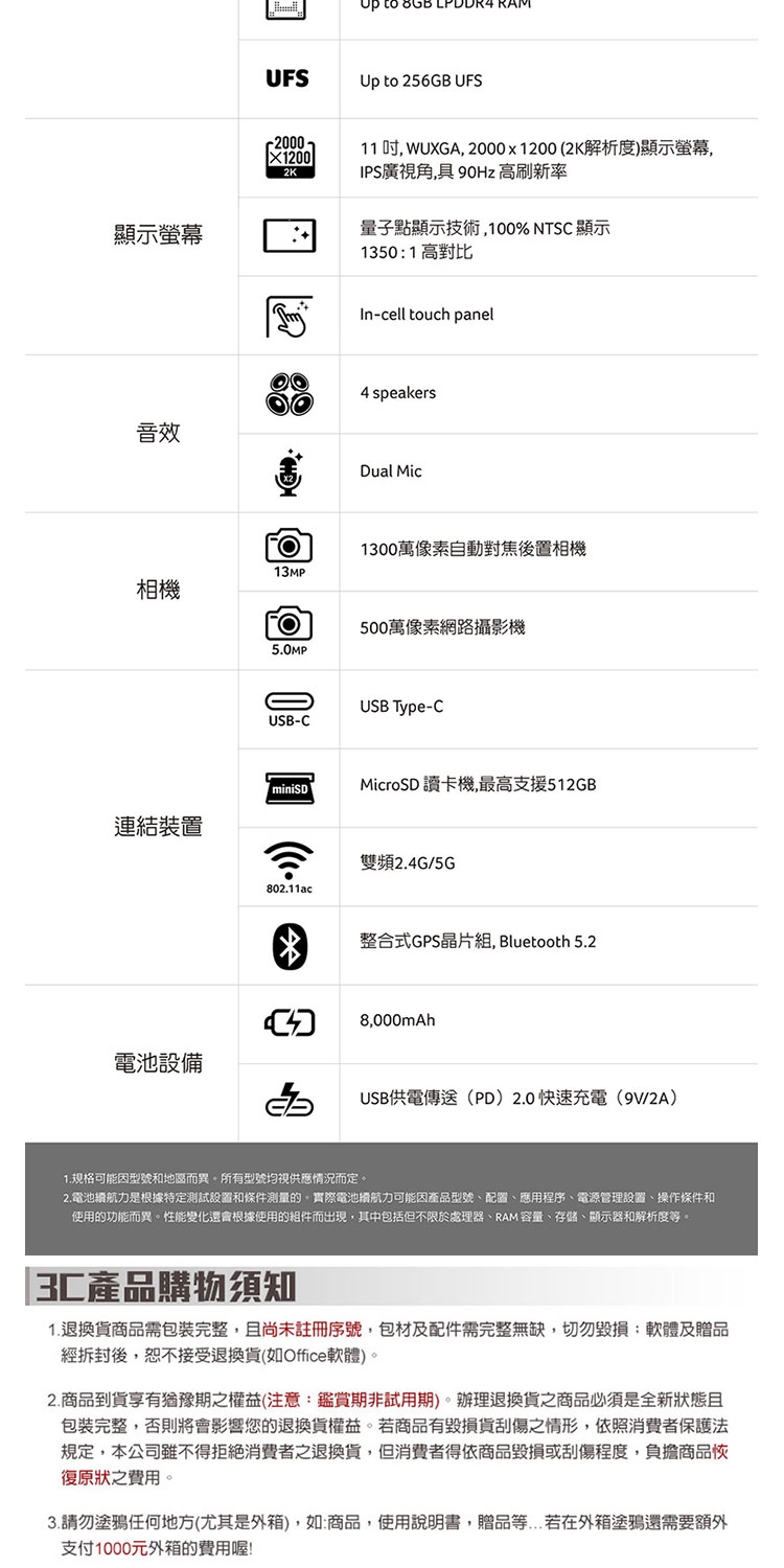◎ 外接儲存容量:支援最高512G microSD Card (相容SDXC, exFAT)
