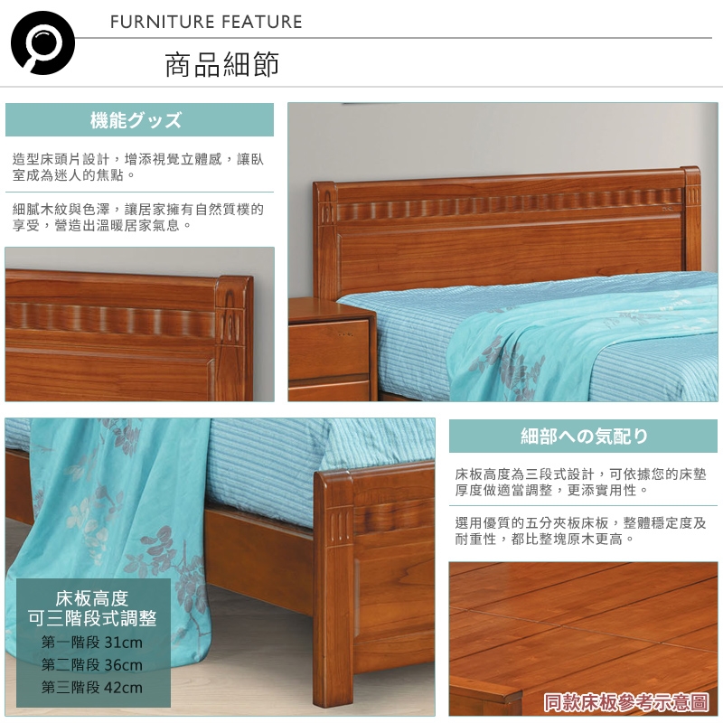 床板高度為三段式設計,可依床墊厚度做適當調整,更添實用性!